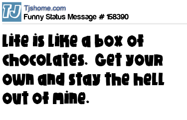 X says Life is like a box of chocolates. Get your own and stay the hell out of mine.