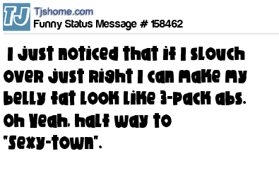 - # 158461 I just noticed that I slouch over just right I can make my bell fat look like 3-pack abs. Oh Yeah, half way to "Sexy-town".