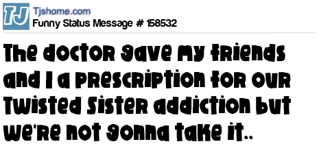 X says The doctor gave my friends and I a prescription for our Twisted Sister addiction but we're not gonna take it..