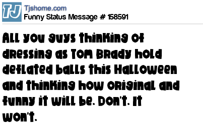 X says All you guys thinking of dressing as Tom Brady hold deflated balls this Halloween and thinking how original and funny it will be. Don't. It won't.