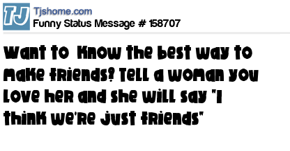 X  Want to  know the best way to make friends? Tell a woman you love her and she will say "I think we're just friends"