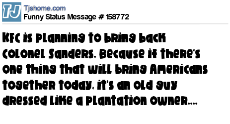 - # 199154 I'm waiting for them to dump Col. Sanders. Last thing we need right is a fried chicken pitchman who looks like a southern plantation owner.