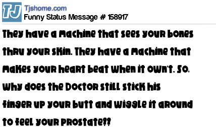 X They have a machine that sees your bones thru your skin. They have a machine that makes your heart beat when it own't. So, why does the Doctor still stick his finger up your butt and wiggle it around to feel your prostate??