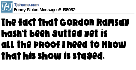 X says The fact that Gordon Ramsay hasn't been gutted yet is all the proof I need to know that his show is staged.