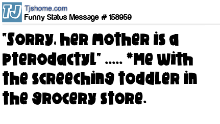 X "Sorry, her mother is a pterodactyl" ..... *Me with the screeching toddler in the grocery store.