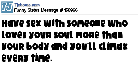 X says Have sex with someone who loves your soul more than your body and you'll climax every time.