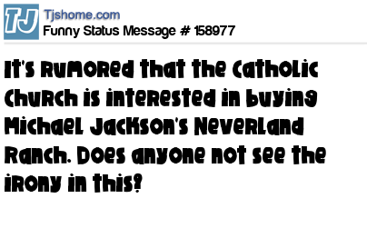 X It's rumored that the Catholic Church is interested in buying Michael Jackson's Neverland Ranch. Does anyone not see the irony in this?