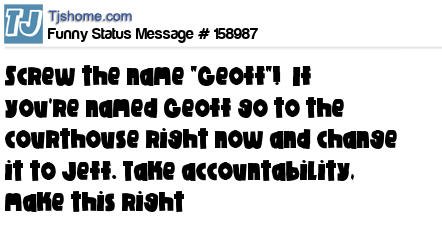 X says Screw the name "Geoff"! If you're named Geoff go to the courthouse right now and change it to Jeff. Take accountability, make this right
