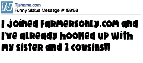 X I joined Farmersonly.com and I've already hooked up with my sister and 2 cousins!!