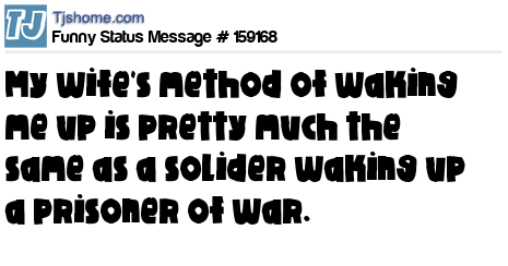 X says My wife's method of waking me up is pretty much the same as a solider waking up a prisoner of war.