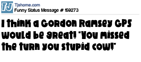 X says I think a Gordon Ramsey GPS would be great! "You missed the turn you stupid cow!"