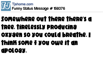 X Somewhere out there there's a tree, tirelessly producing oxygen so you could breathe. I think some f you owe it an apology.
