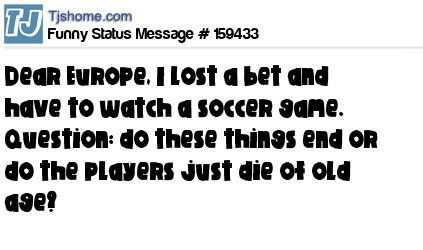 X says Dear Europe, I lost a bet and have to watch a soccer game. Question: do these things end or do the players just die of old age?