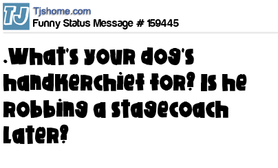X says .What's your dog's handkerchief for? Is he robbing a stagecoach later?