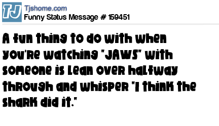 X says A fun thing to do with when you're watching "JAWS" with someone is lean over halfway through and whisper "I think the shark did it."