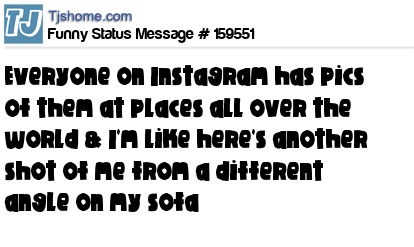 X says Everyone on Instagram has pics of them at places all over the world & I'm like here's another shot of me from a different angle on my sofa
