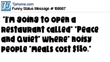- # 159535 I'm going to open a restaurant called "Peace and Quiet" where kids meals cost $150.
