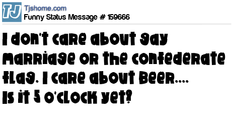 X says I don't care about gay marriage or the confederate flag. I care about Beer.... Is it 5 o'clock yet?