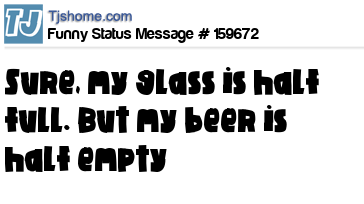 - # 17373 - My mates were arguing over whether a glass was half empty or half full. So I took the glass and put the contents into a smaller glass. Problem f***ing solved...