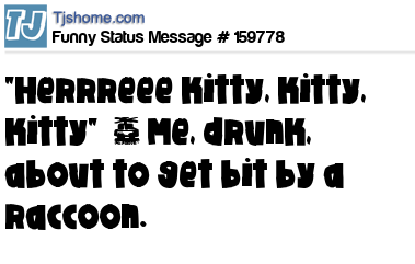 - # 166672 "Here kitty, kitty, kitty" - Me, drunk, about to get bit by a raccoon.