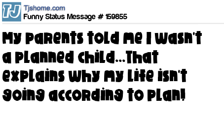 X My parents told me I wasn't a planned child...That explains why my life isn't going according to plan!