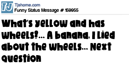 X What's yellow and has wheels?... A banana, I lied about the wheels... Next question