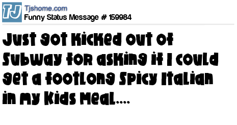 X says Just got kicked out of Subway for asking if I could get a footlong Spicy Italian in my Kids Meal....
