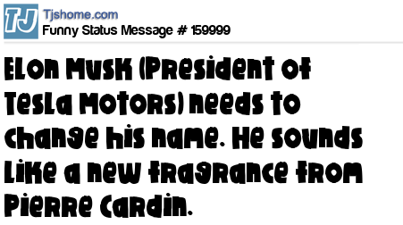 X says Elon Musk (President of Tesla Motors) needs to change his name. He sounds like a new fragrance from Pierre Cardin.