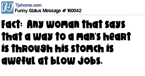 X says Fact: Any woman that says that a way to a man's heart is through his stomch is aweful at blow jobs.