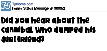 - # 16347 What does a cannibal do after dumping his girlfriend?...............wipes =)