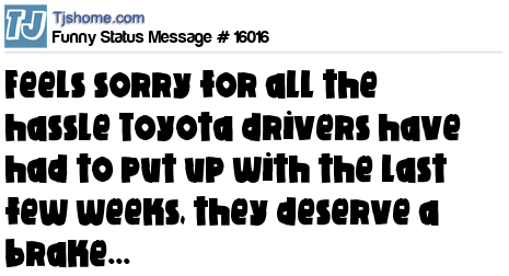 - # 16884 so for you Toyota drivers.... if you get pulled over for speeding all you have to say to the officer.... Have you watched the news lately?