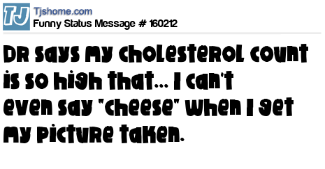 X says Dr says my cholesterol count is so high that... I can't even say "cheese" when I get my picture taken.