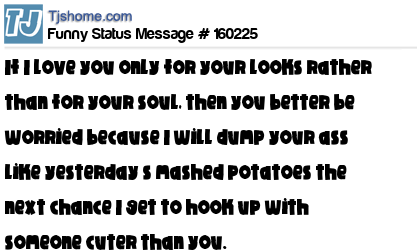 X says If I love you only for your looks rather than for your soul, then you better be worried because I will dump your ass like yesterday’s mashed potatoes the next chance I get to hook up with someone cuter than you.