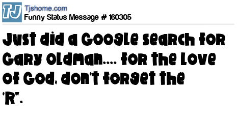 X says Just did a Google search for Gary Oldman.... for the love of God, don't forget the 'R".