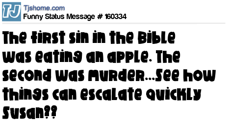 X The first sin in the Bible was eating an apple. The second was murder...See how things can escalate quickly Susan??