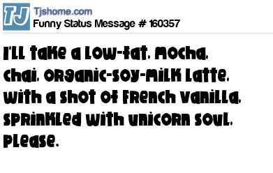 X says I'll take a low-fat, mocha, chai, organic-soy-milk latte, with a shot of French vanilla, sprinkled with unicorn soul, please.