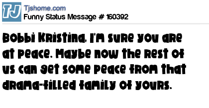 X says Bobbi Kristina, I'm sure you are at peace. Maybe now the rest of us can get some peace from that drama-filled family of yours.