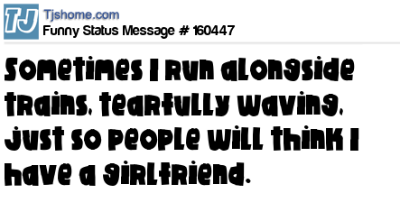 X says Sometimes I run alongside trains, tearfully waving, just so people will think I have a girlfriend.