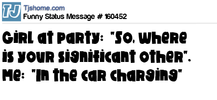 X says Girl at party: "So, where is your significant other". Me: "In the car charging"