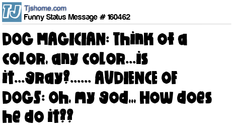 X DOG MAGICIAN: Think of a color, any color...is it...gray?...... AUDIENCE OF DOGS: Oh, my god,,, How does he do it??