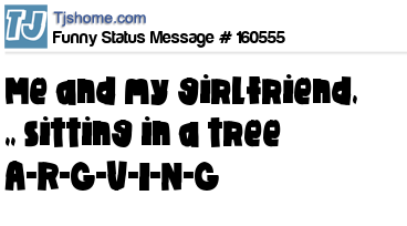 X Me and my girlfriend, ,, sitting in a tree A-R-G-U-I-N-G