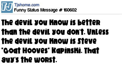 X says The devil you know is better than the devil you don't. Unless the devil you know is Steve "Goat Hooves" Kapinski. That guy's the worst.