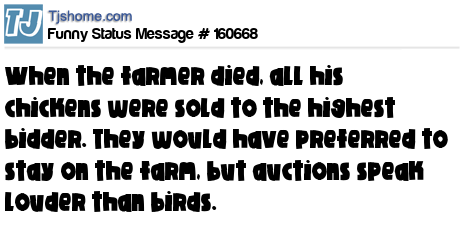 X When the farmer died, all his chickens were sold to the highest bidder. They would have preferred to stay on the farm, but auctions speak louder than birds.