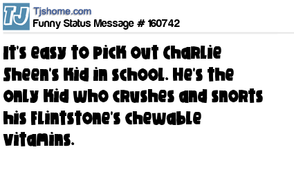 X says It's easy to pick out Charlie Sheen's kid in school. He's the only kid who crushes and snorts his Flintstone's chewable vitamins.