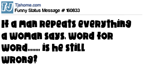 X If a man repeats everything a woman says, word for word,,,,,,,, is he still wrong?