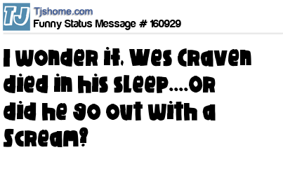 - # 160921 it in bad taste to ask if Wes Craven died in his sleep?