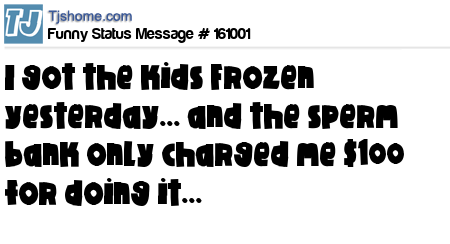 X I got the kids Frozen yesterday... and the sperm bank only charged me $100 for doing it...