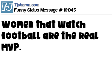 - # 77325 Don't judge me for saying girlfriends don't watch football. If you have a girlfriend that loves football, she should be your wife!