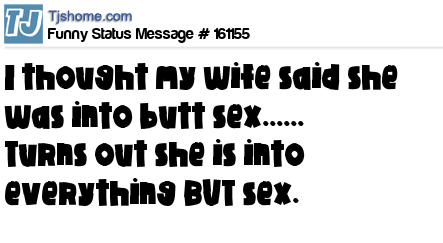 X says I thought my wife said she was into butt sex...... Turns out she is into everything BUT sex.