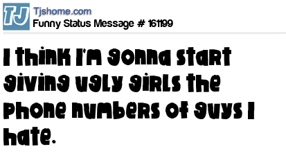 X says I think I'm gonna start giving ugly girls the phone numbers of guys I hate.